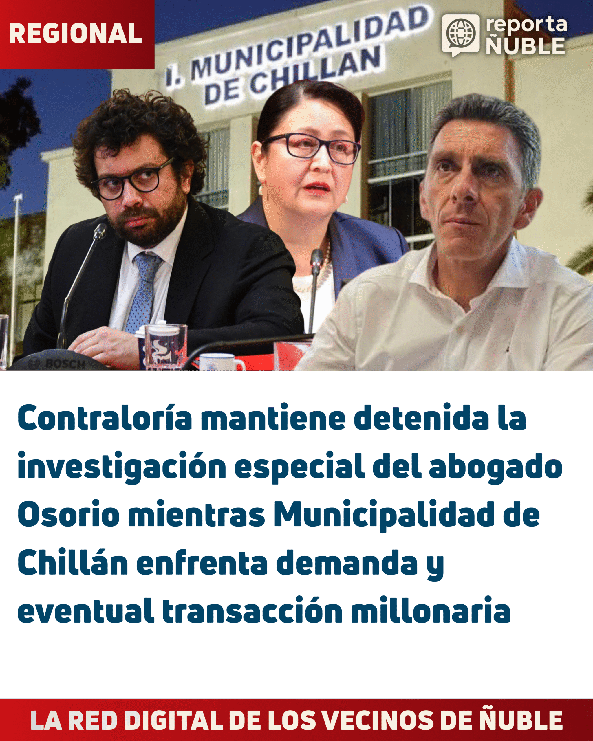 Contraloría mantiene detenida la investigación especial del abogado Osorio mientras Municipalidad de Chillán enfrenta demanda y eventual transacción millonaria